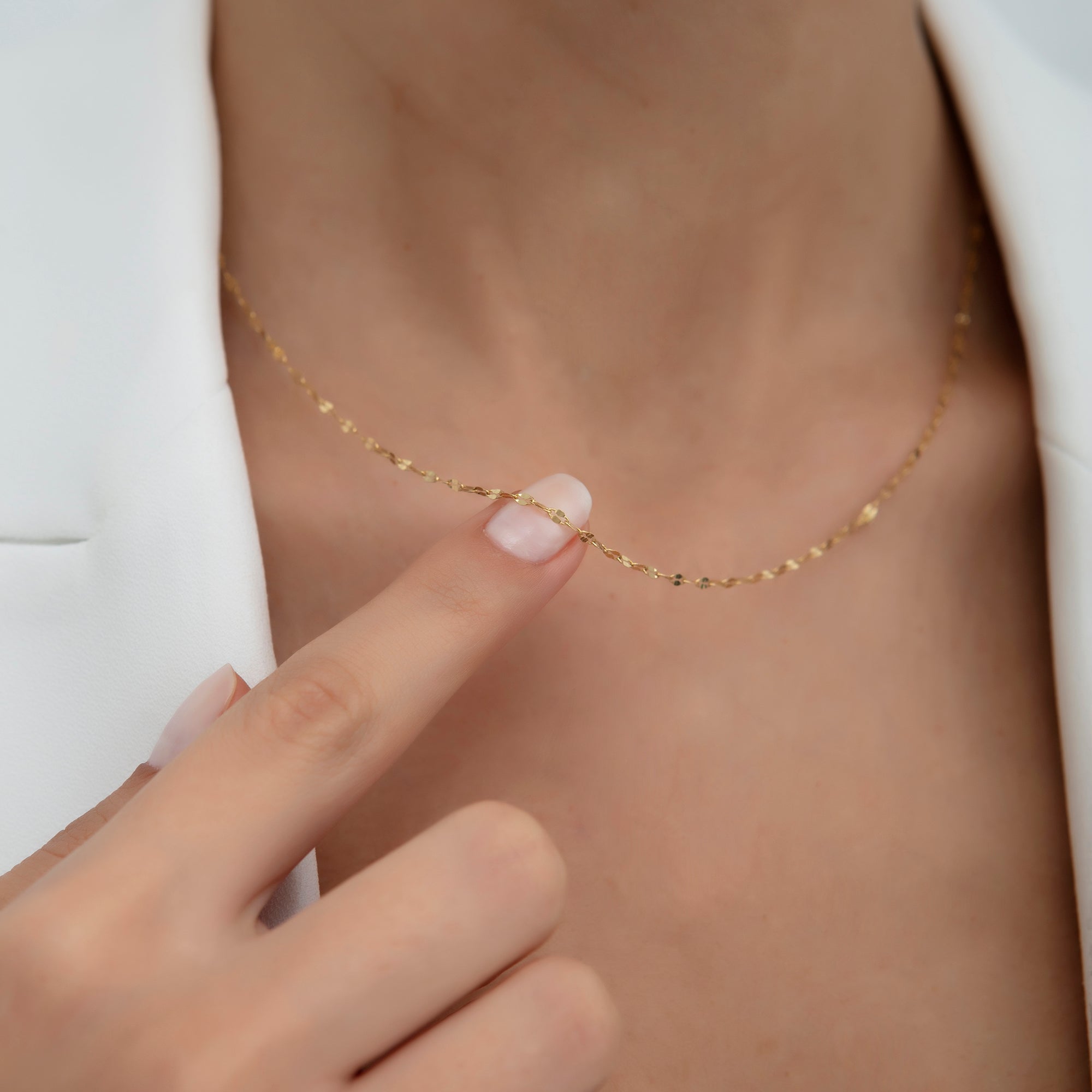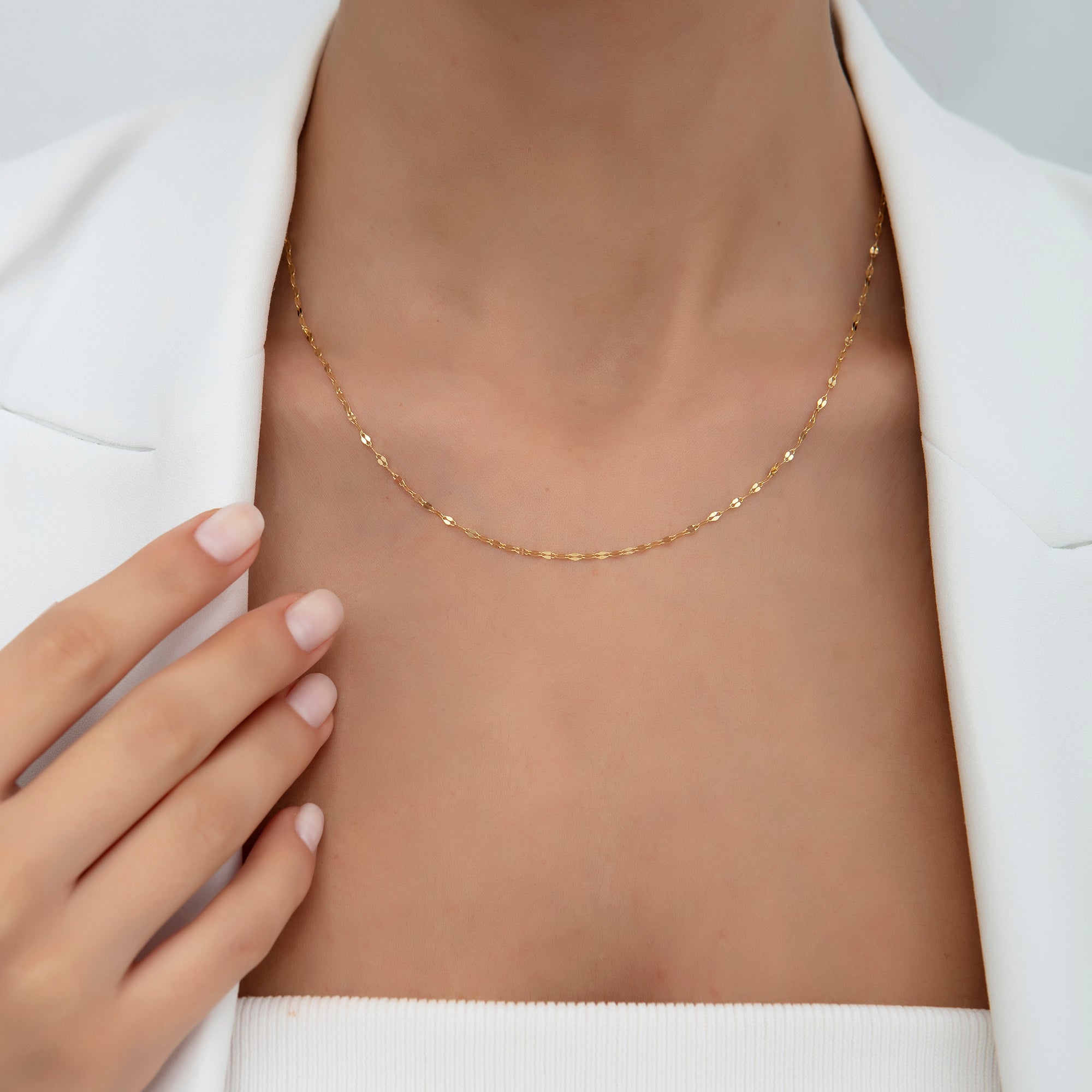 14 Ayar Altın Aynalı Zincir Kolye 50 cm