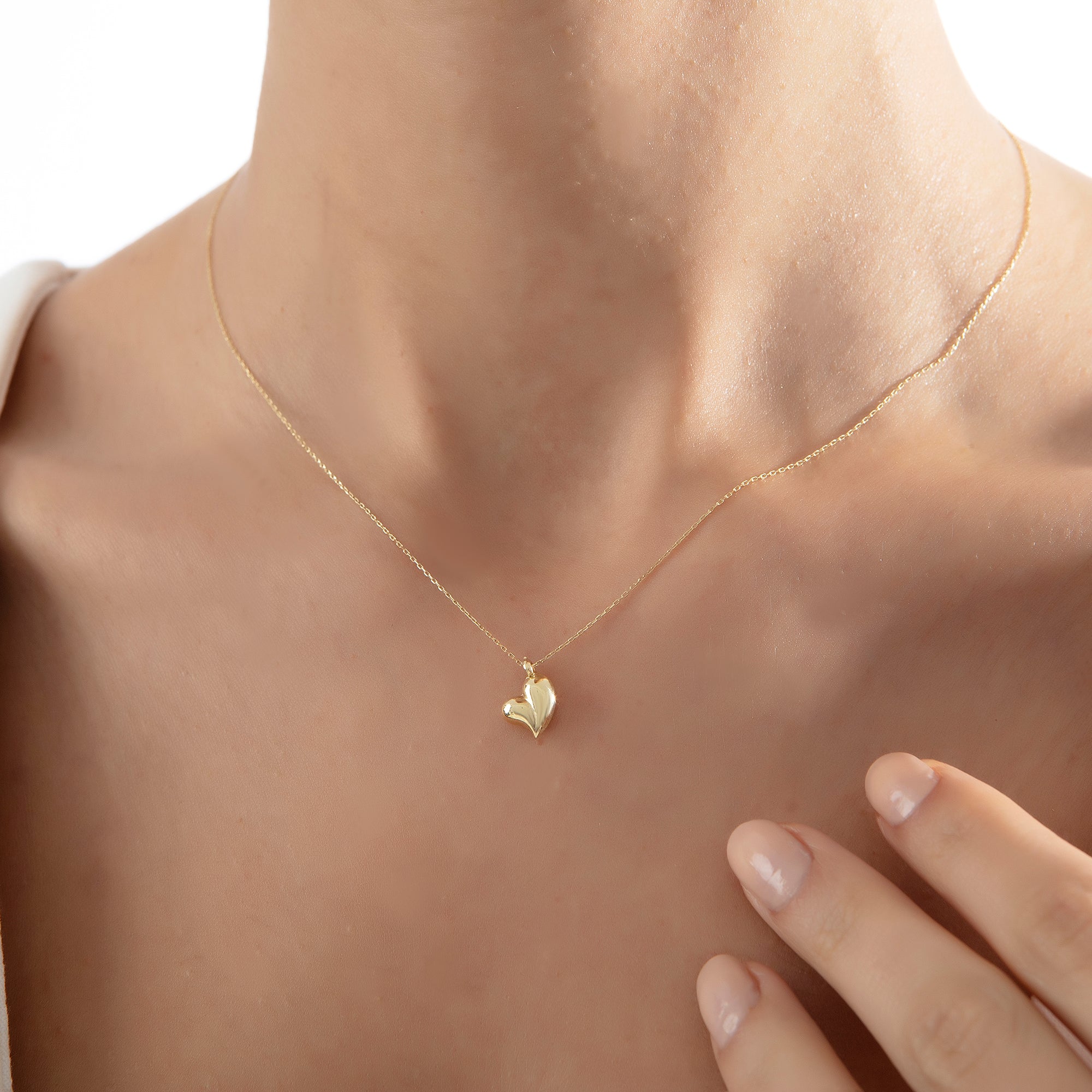 14 Ayar Altın Bombeli Kalp Kolye