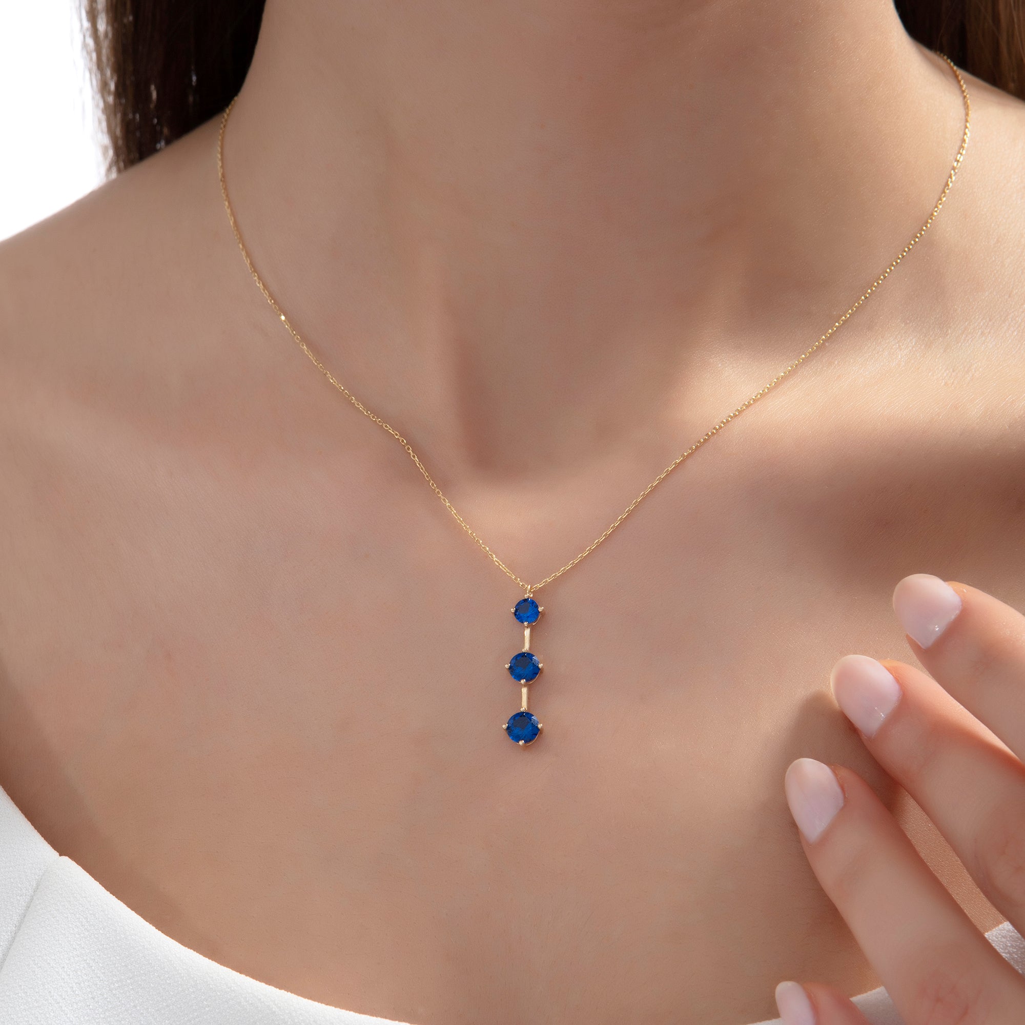 14 Ayar Altın Üç Taşlı Kolye