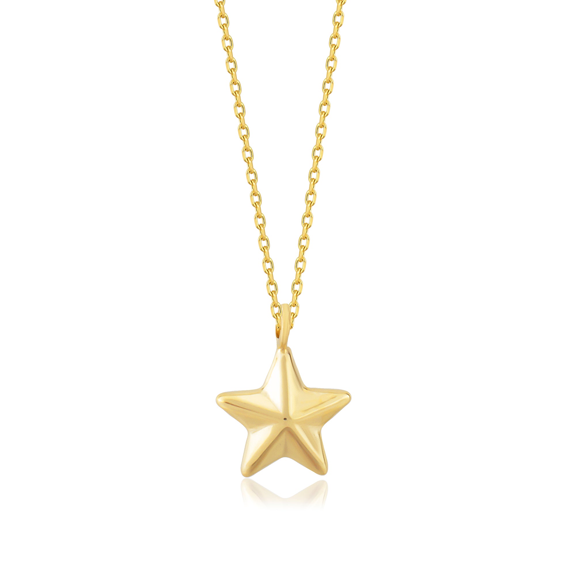 14 Ayar Altın Üç Boyutlu Yıldız Kolye
